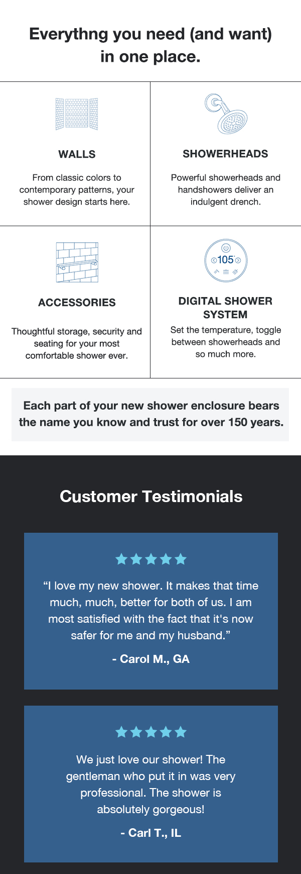 “I love my new shower. It makes that time much, much, better for both of us. I am most satisfied with the fact that it's now safer for me and my husband.”